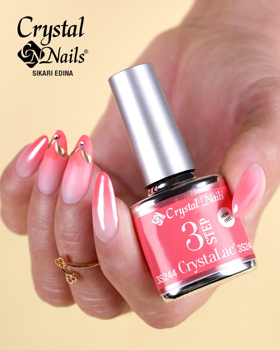 3 STEP CRYSTALAC – 3S244 (4ml) dolazi iz zasebne linije Crystal Nails trajnih lakova u 3 koraka koji ne sadrže HEMA sastojke u sebi.