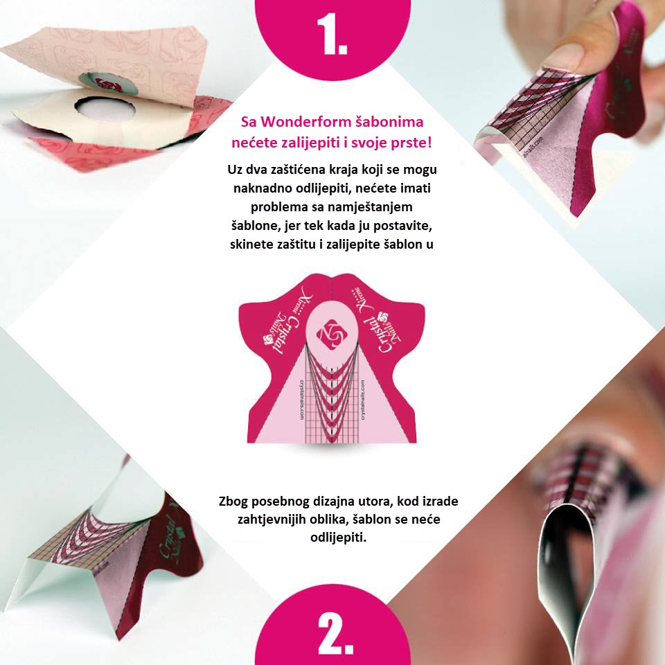 Crystal Šablone Wonder 200 kom su Crystal Nails izuzetno čvrste šablone za produživanje noktiju. Izrađene od debljeg materijala.